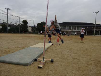今日は最後の高跳びでした。子ども達は,とても残念がっていましたが,目標記録に向かって一生懸命練習していました。