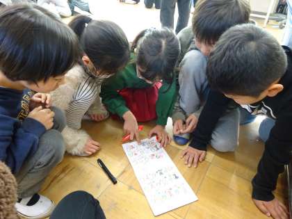出し物は,ゴルフにボーリング,宝探し,人間まちがいさがし,お笑い,まちがいさがし,みんなでダンスでした。お腹を抱えて笑ったり,真剣になって協力したりと,さらにクラスの仲が深まりました。
