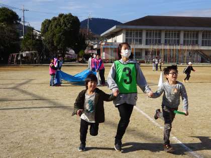 今日は6年生が一緒に遊んでくれました。障がい物走を用意してくれていたり,一緒に王様鬼ごっこというゲームをしてくれたりして,1年生はとても喜んでいました。6年生が卒業するまで後少し。一緒に思い出がたくさん作れるといいですね。