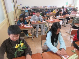 子どもたちは,花びら1枚1枚をしっかりと見ながら,丁寧に絵を描くことができました。