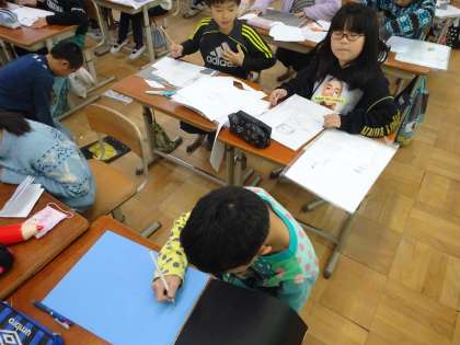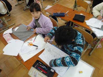 下書きを板に書き写しました。線を丁寧になぞっていました。彫るのは年明けです。素敵な作品を完成させたいですね。