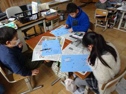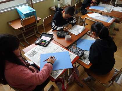 版画の続きをしました。彫刻刀の使い方にも慣れてきました。