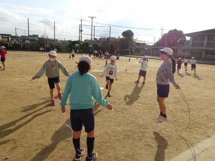 ペース走の後は,なわとびをしています。できる技を増やしたり,何回跳べるか記録に挑戦したりしています。