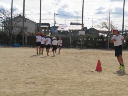 4分走って,脈拍をはかり,自分のペースを確認します。