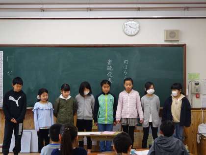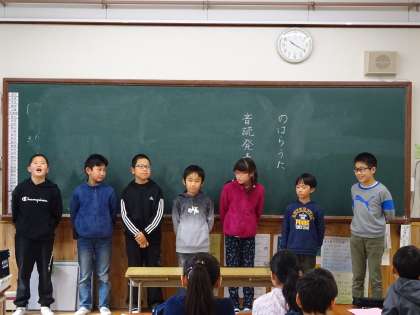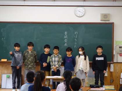 国語では「のはらうた」を学習しています。グループに分かれて,音読発表会の中間発表を行いました。