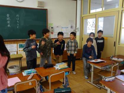 声の大きさや速さを変えたり,動きをつけたりとグループごとに工夫して音読していました。