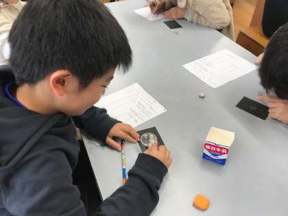 次は,メスシリンダーを使ってしおがどんなふうにして溶けていくのかを実験しました。