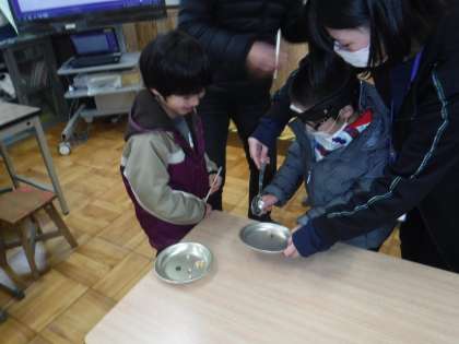 給食委員会が計画した「豆つまみ大会!」が14日(火)のこんにちはタイムに行われます。そらいろのみんなで練習をしました。6年生がどうすればはやくつなげられるかを考えて順番を決めていました。