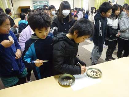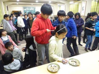 4組は惜しくも3位でした。まめつまみ大会だけでなく普段から正しいはしの持ち方をこころがけたいですね。