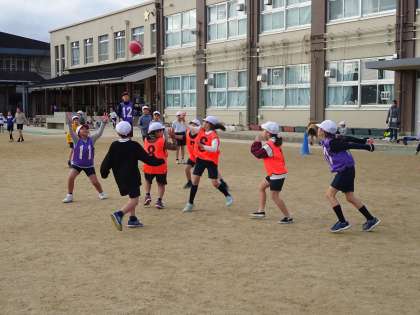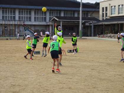 初めてのポートボールをしました。3年生の時に学習したパスゲームの経験を活かして,楽しみながら試合をしていました。
