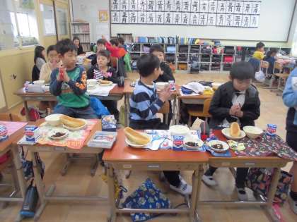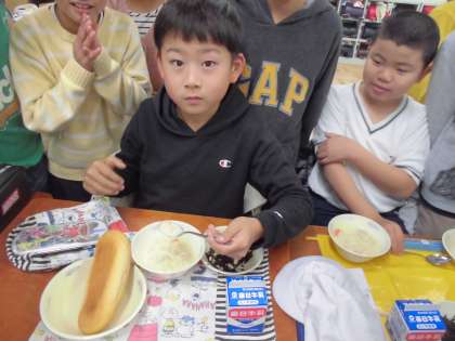 今日の給食ではハッピーキャロットがクリームシチューに入っていました。