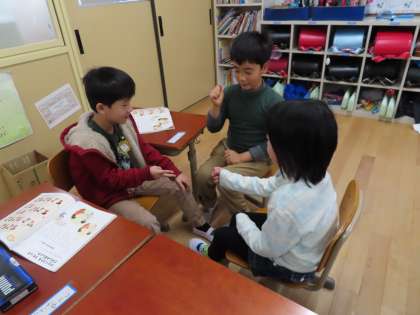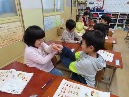 音楽科の学習で「おちゃらか ほい」を歌いました。子どもたちは,ペアの友だちと一緒に歌をうたいながら楽しんでいました♪