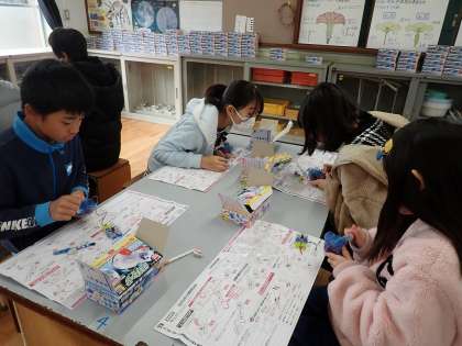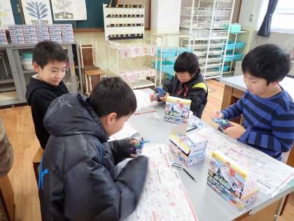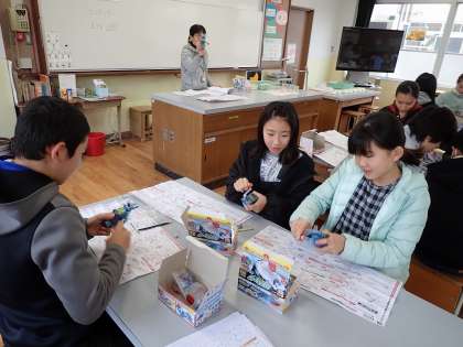 理科では,手回し発電機を使って電気をためました。