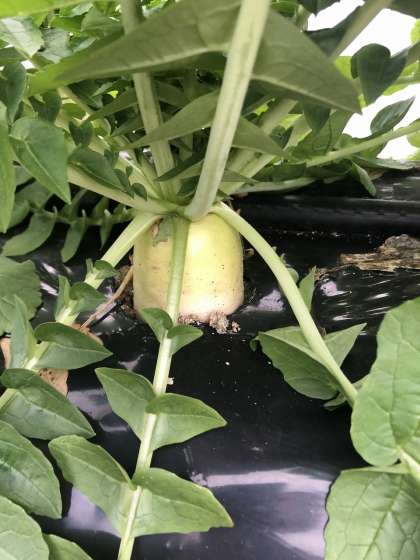 冬休み前に根をまいた大根が,冬の寒さを乗り越えて,少しずつ大きく太くなってきています。観察にきている子どもたちは収穫を楽しみにしています。