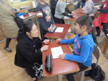 困ったことなかった?と聞くと,「わたすときは両手の方がいいと思う。」