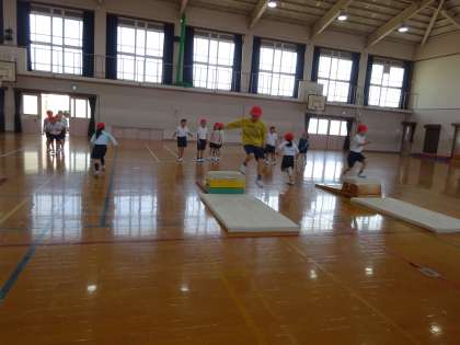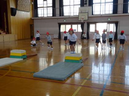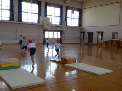 今日は体育で初めての跳び箱をしました。ロイター板やマットや跳び箱など準備するものがたくさんありましたが,みんなで協力して準備や片付けができました。今日はふみこしやとびこしなど簡単な技をする時間しかありませんでしたが,これから難しい技にも挑戦していきましょう。