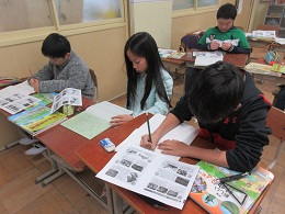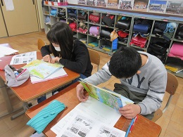 子どもたちは,資料やポスター,お土産などを見ながら調べを進めていきました。
