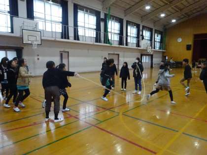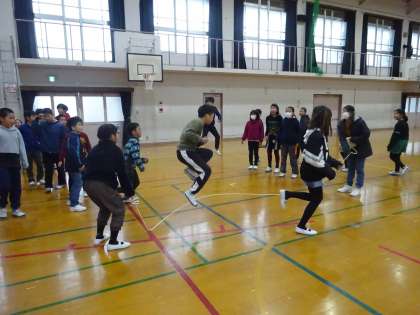 縄を回す人も大きく足を使って回してくれました。はじめはなかなか入れなかった子もどんどん跳べるようになり成長を見せてくれました。