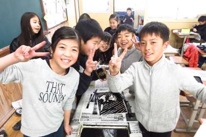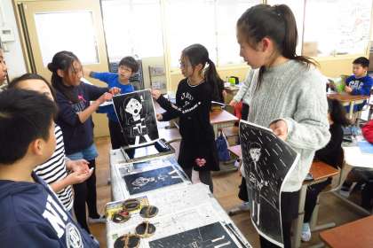 ソーラン節で,思い出に残っている場面を版画にしています。