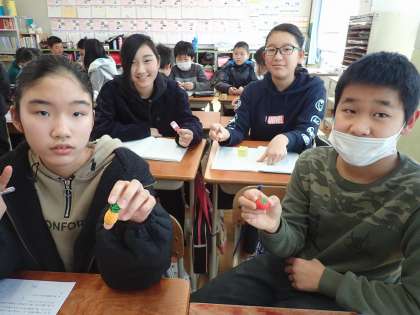 新しい班になったこともあり,記念に班写真を消しゴムと共に撮りました。