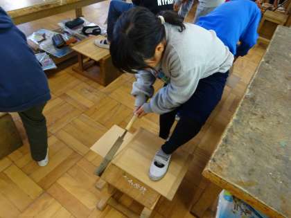 今日は図画工作「森のげいじゅつ家」の学習で,のこぎりを使いました。4年生で初めて,のこぎりを使うので子ども達はドキドキ・ワクワクしていました。