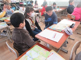 宇治茶というお茶があることや,宇治川などの自然があること,平等院など昔から残る建物があることなど,子どもたちが宇治市について知っていることや地図帳からわかることを交流していきました。