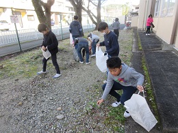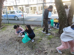 図画工作科「森のげいじゅつ家」の学習で,自然の中にある枝やどんぐりを探しにいきました。