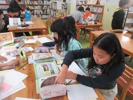 子どもたちは,図書室で借りた本を読みながら,自分のテーマについて調べていきました。