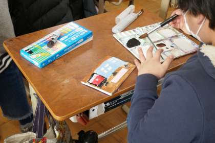 オルゴール箱を作っています。彫り終わった子も多く,色を付けたり,やすりできれいに整えている子が増えてきました。