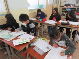交流では,宇治市がお茶のつくりやすい地形にあったことや,宇治市に宇治茶のつくり方が伝わった歴史などを調べ,考えを深めていきました。