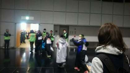 みやこメッセで出発式が行われ、各区間ごとに中継所に向かう選手です。