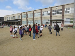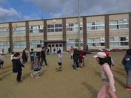 企画係のアイデアで,今日の中間休みに1年生と一緒にドッジボールをしました。