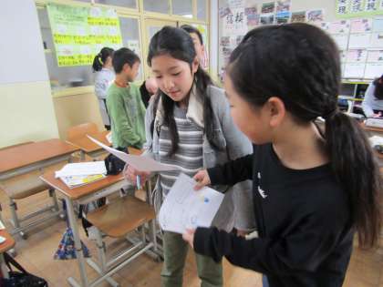 思い出を書出し,友達と交流しました。