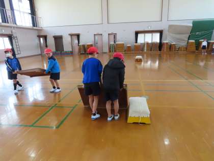 体育科「とびばこあそび」の準備の様子です。