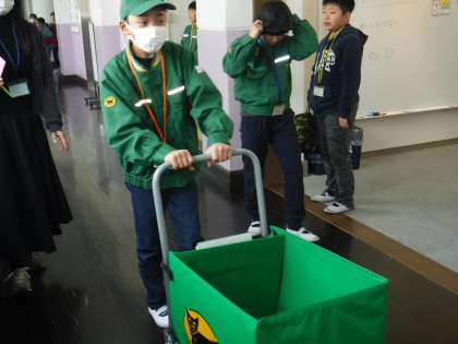 今日は、生き方探求館で「スチューデントシテイの学習」がありました。そらいろ学級の5年生は、クロネコヤマトでお仕事をしました。