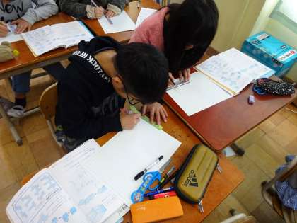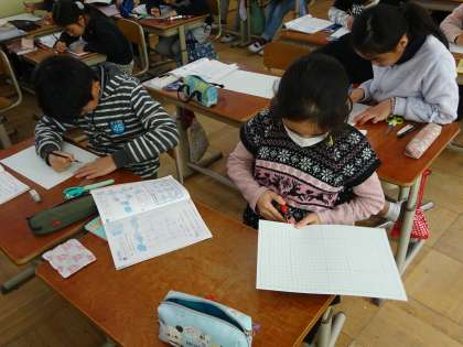 今日は、算数科で「展開図」をかく学習をしました。