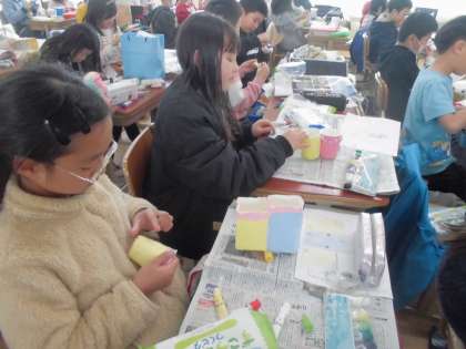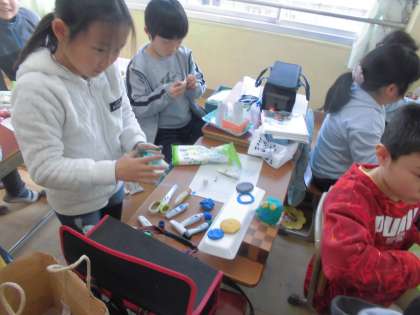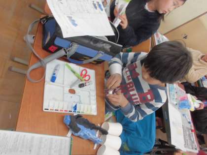 今回はこのねんどに絵の具を混ぜ,色ねんどにして作品を作っていきました。