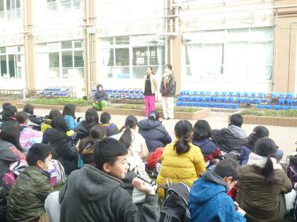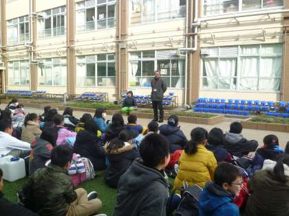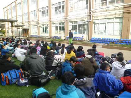 まずは出発式を学校で行いました。