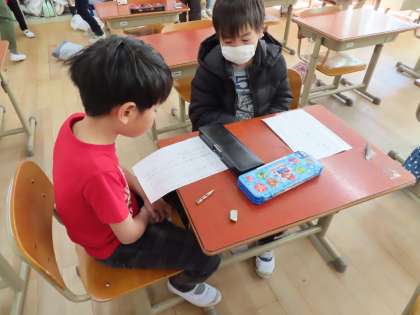 鍵盤ハーモニカで曲を弾いたり,黒板に上手に字を書いたり,算数の問題を考えたり…