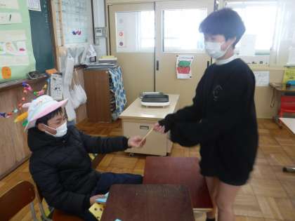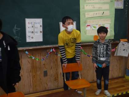 プレゼントは、手作りのカードです。「6年生が卒業した後は、よろしくたのむよ!」と声をかけてもらいました。おわりの言葉では「めちゃめちゃ楽しかったです!」「ホットックもおいしかった〜」と感想を言う二人でした!