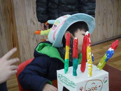 今日は、3月の誕生日会をしました!「7歳おめでとう!」6年生は、「1年間ありがとう!」とステキな声をかけていました。