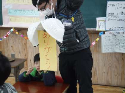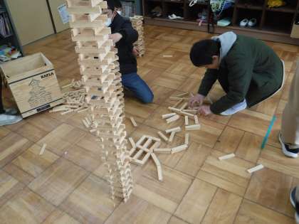 手作りの7本のろうそくを「フー!」した後「ハッピーバースデー」を歌ってカプラで遊びました。高く積み上げたり横にのばしたり漢字で表すこともしました。