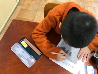 学校に来ているお友達は,ぬりえやめいろ,