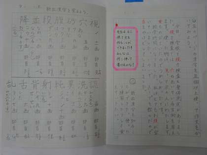 今日の先生の自主学習は,「新出漢字の練習」です。