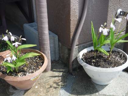 大宮小学校で咲いている花や実を紹介します!白い色と紫色の花がきれいに咲いています。なんという花かしっていますか?「そんなん、しらん!」そうなんです「しらん」という名前の花です。