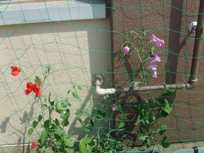上の写真は、スイートピーという花で真ん中と下の写真は、えんどう豆なんです。よく似ていますね。ツルがあって似ていますが、茎がちょっとちがいますね。