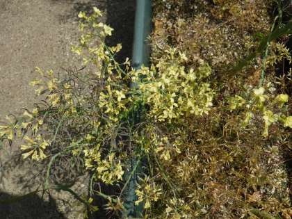 この花もめずらしい花です。3年生は、去年、植えたブロッコリーを覚えていますか?ブロッコリーは緑色ですが、花はきれいな黄色です。