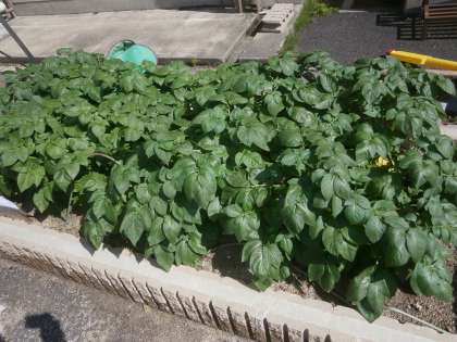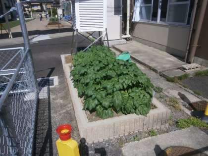 1年生教室前,そらいろ畑のじゃがいもがとっても大きくなってきました。