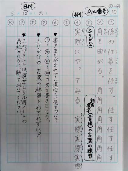 今日からの漢字学習は,ドリルの練習ページを使います。