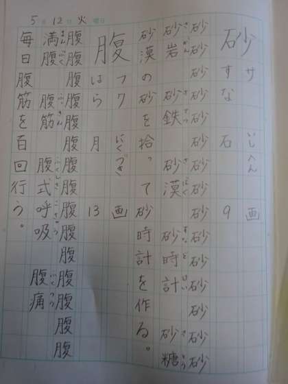 「砂」と「腹」をずっと書いていると,字が変に見えてきました。